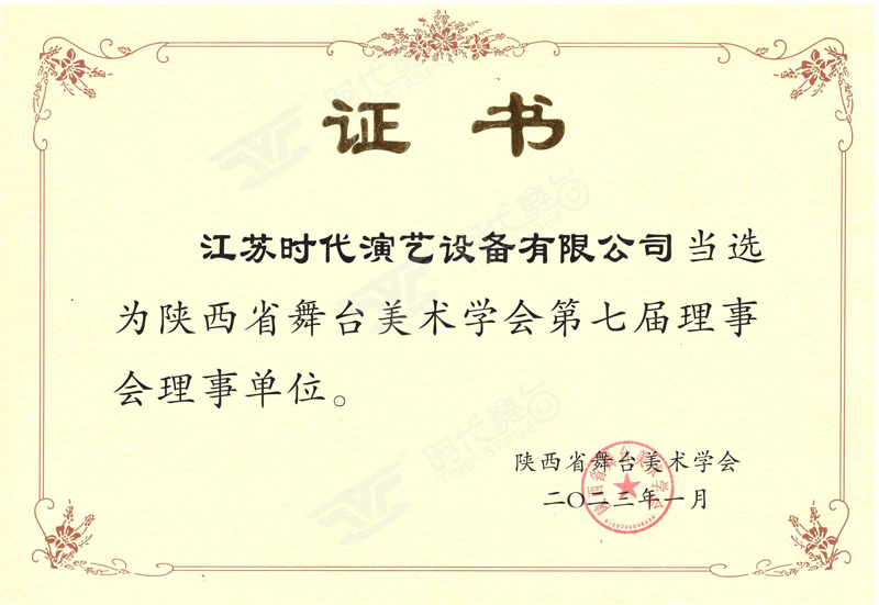 陜西省舞臺美術(shù)協(xié)會理事單位證書